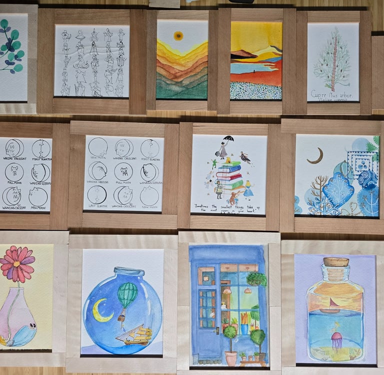 When not attending artist and craft fairs for her husband's woodworking business (@kobacuttingboards), she's learning a new skill, watercoloring, making stain glass art, pet sitting, fighting with Photoshop and Illustrator, joking about videos and reels to make that will never get made, starting yet another spreadsheet for an upcoming trip, sewing (clothes usually), doing photoshoots for friends, mastering a new skill on the Cricut, learning German (or Spanish, or general linguistics), and cranking through another audiobook on 3x speed. Usually multitasking many of these. No wonder her house always needs to be cleaned.